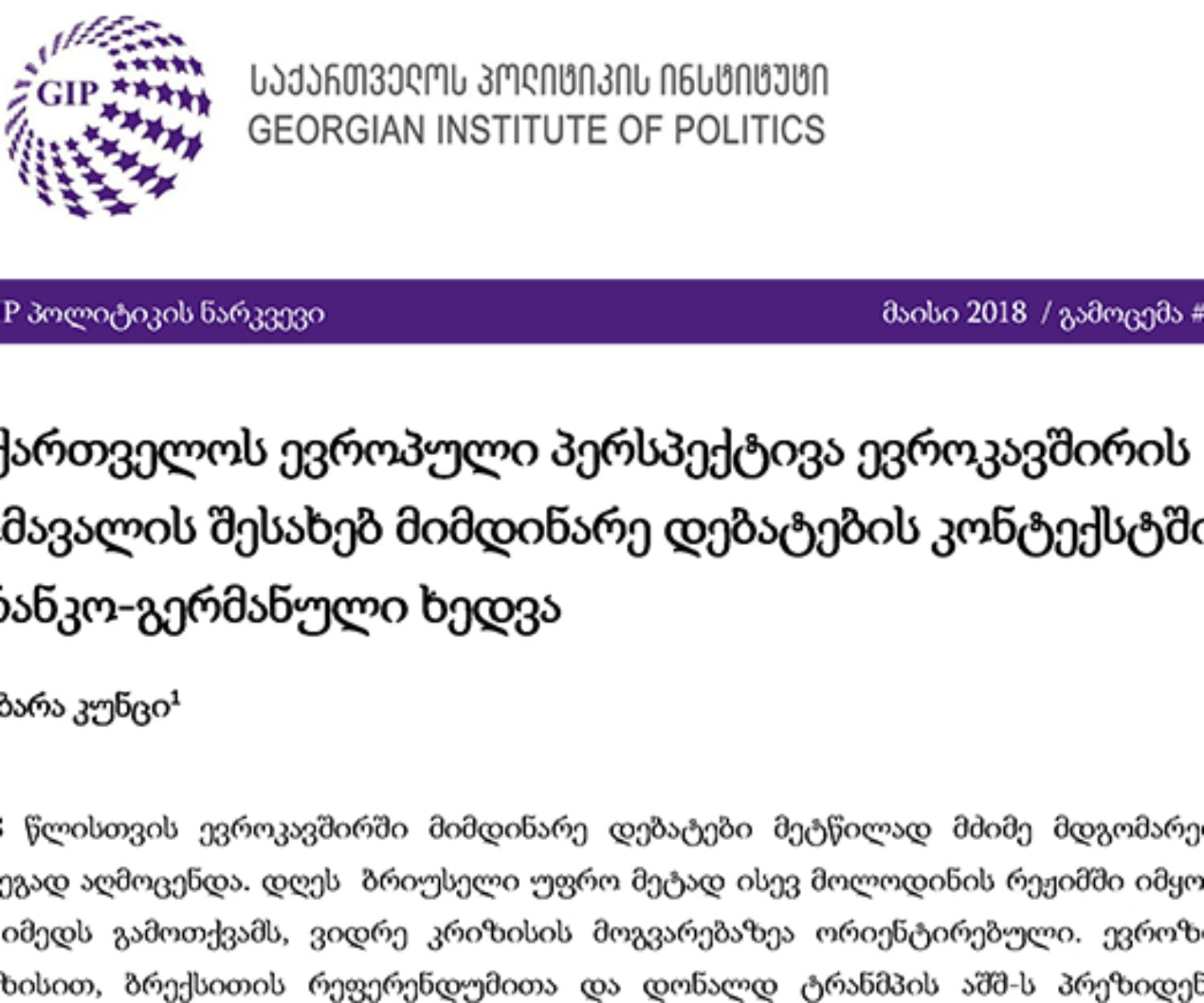 სიახლეები 28 მარ 2024 ბრიფინგი – „ფრანკო-გერმანული განხეთქილება აღმოსავლეთ ევროპასთან დაკავშირებულ სტრატეგიაზე: შედეგები საქართველოსთვის“27 მარტს საქართველოს პოლიტიკის ინსტიტუტის ორგანიზებით გაიმართა ონლაინ ბრიფინგი სახელწოდებით „ფრანკო-გერმანული განხეთქილება… GIP