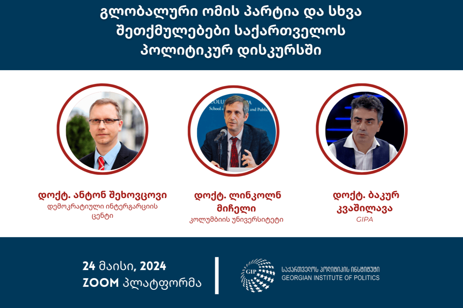 საქართველოს პოლიტიკის ინსტიტუტმა 24 მაისს მოაწყო ვირტუალური საჯარო დისკუსია სახელწოდებით „გლობალური ომის პარტია და სხვა შეთქმულებები საქართველოს პოლიტიკურ დისკურსში.“