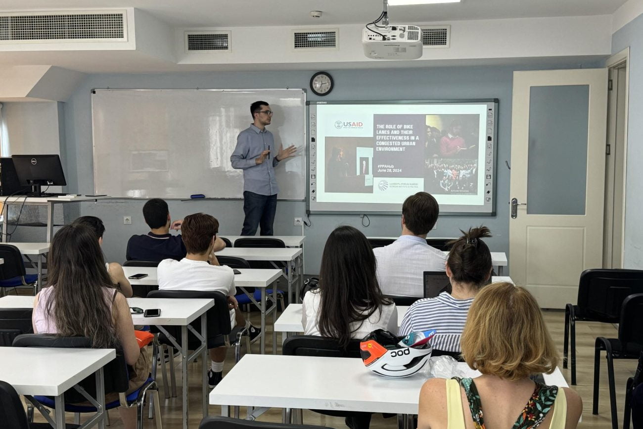 The presentation featured a work-in-progress policy brief titled “The Role of Bike Lanes and Their Effectiveness in a Congested Urban Environment” by Shio Jashi, the author of the brief and a participant in the Public Policy Analysis Course. The event took place at the International School of Economics of Tbilisi State University (ISET). The public policy brief falls under the category of municipal issues and challenges in Georgia.