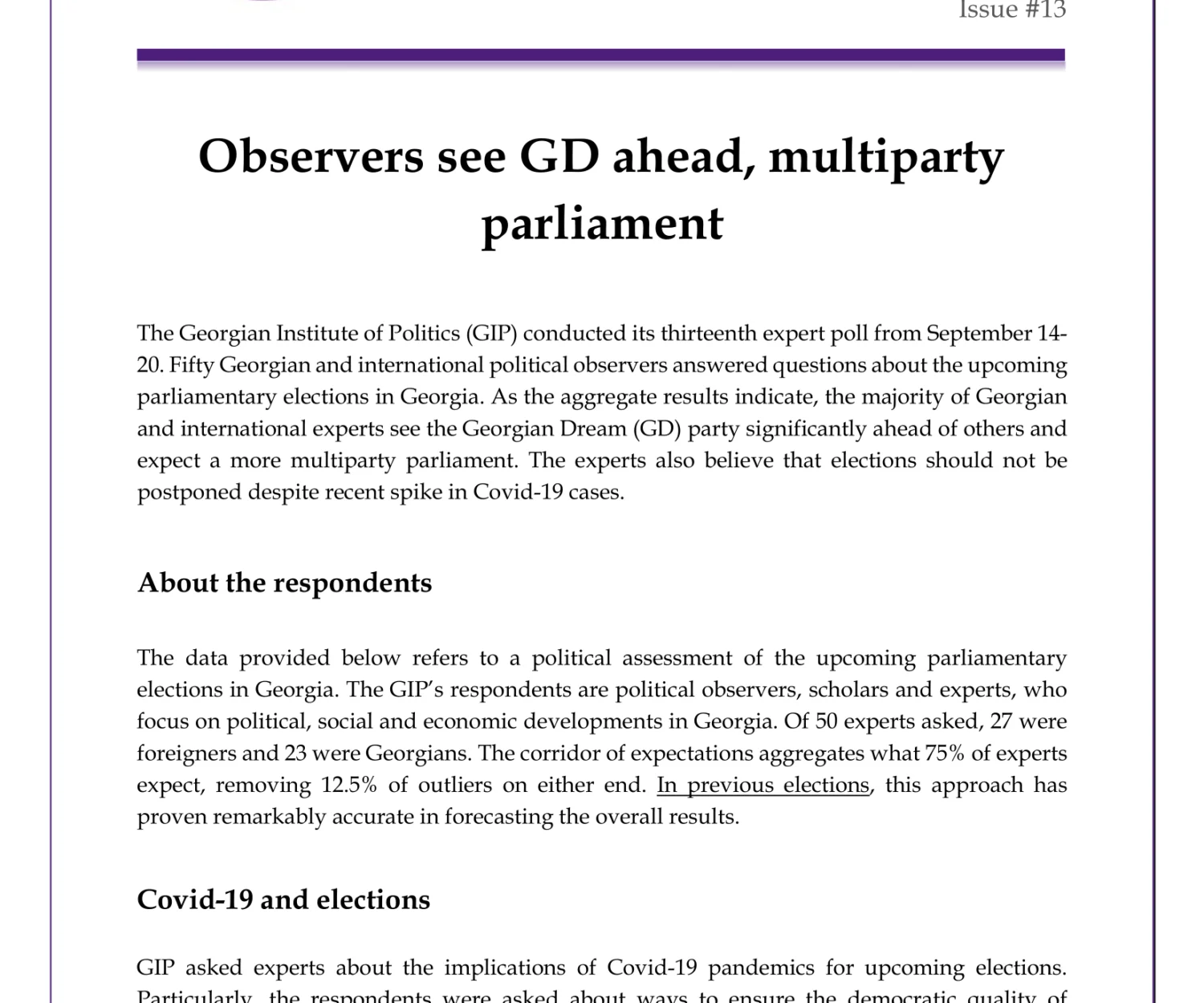 Uncategorized 16 Oct 2020 Observers see GD ahead, multiparty parliamentGIP Expert Polls / Issue #13 GIP
