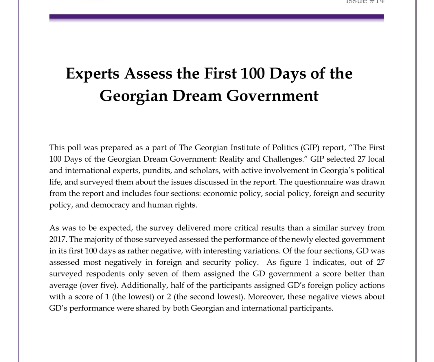Uncategorized 23 Apr 2021 Experts Assess the First 100 Days of the Georgian Dream GovernmentGIP Expert Polls / Issue #14 GIP