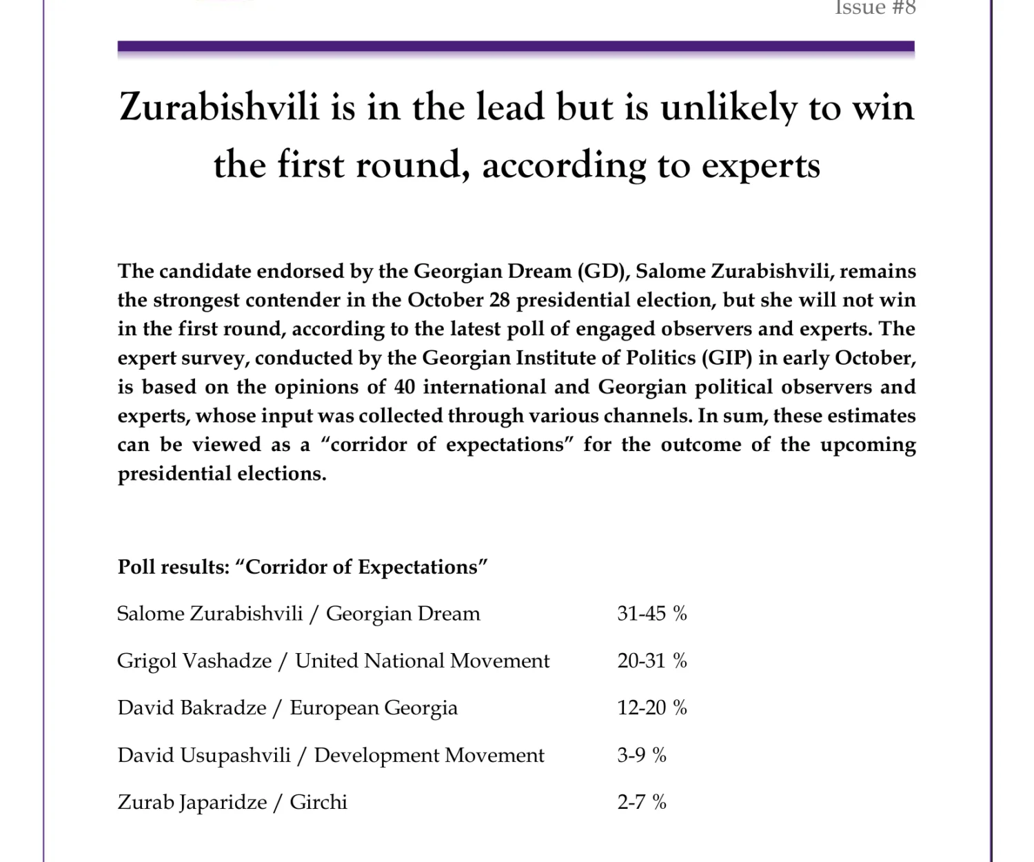 Uncategorized 22 Oct 2018 Zurabishvili is in the lead but is unlikely to win the first round, according to expertsGIP Expert Polls / Issue #8 Kornely Kakachia