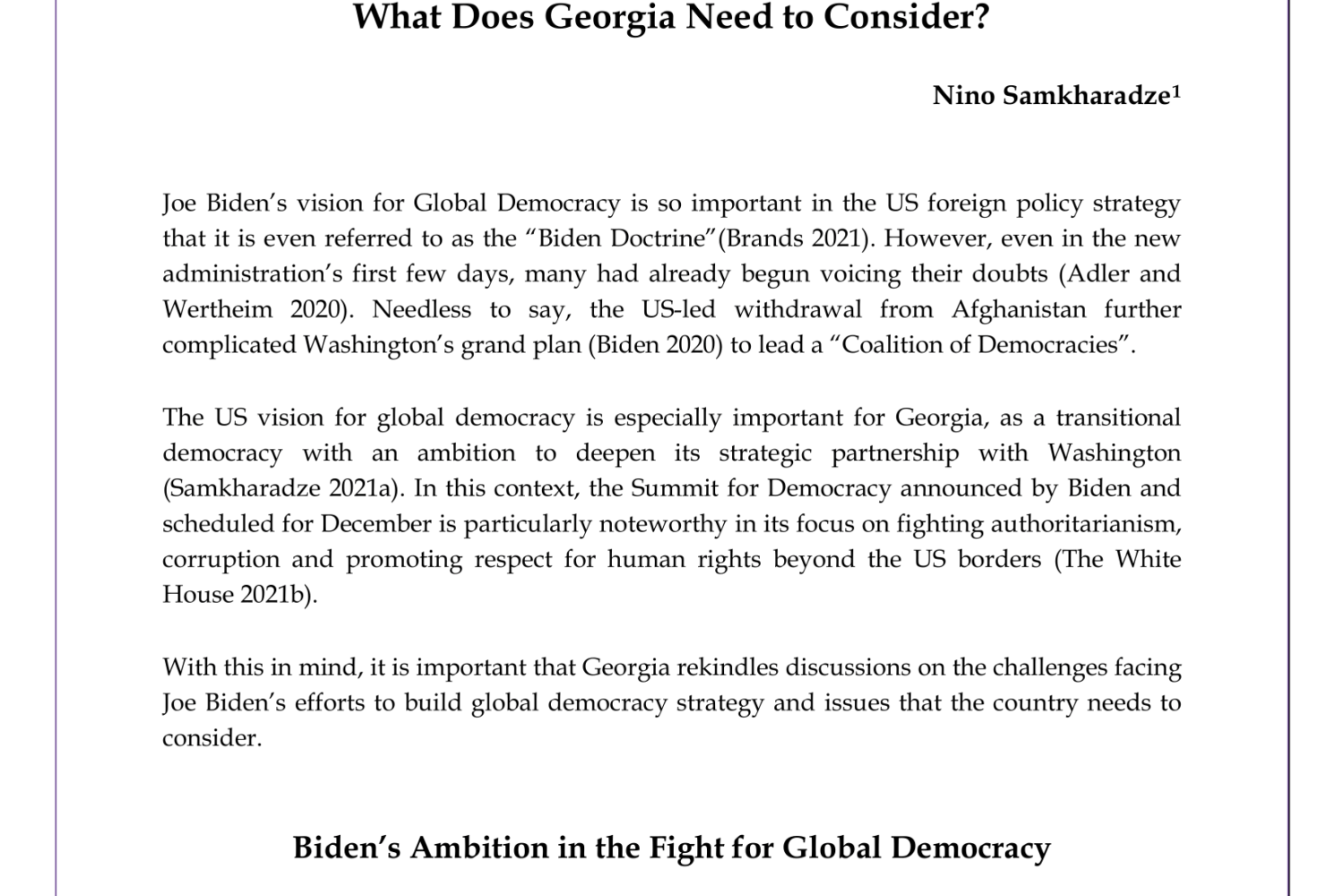 With this in mind, it is important that Georgia rekindles discussions on the challenges facing Joe Biden’s efforts to build global democracy strategy and issues that the country needs to consider.