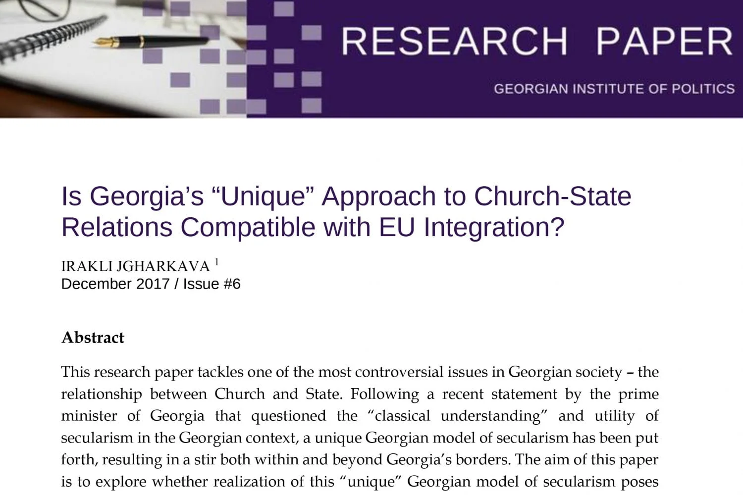 This research paper tackles one of the most controversial issues in Georgian society – the relationship between Church and State. Following a recent statement by the prime minister of Georgia that questioned the “classical understanding” and utility of secularism in the Georgian context, a unique Georgian model of secularism has been put forth, resulting in a stir both within and beyond Georgia’s borders. The aim of this paper is to explore whether realization of this “unique” Georgian model of secularism poses any threat to the country’s European integration aspirations.