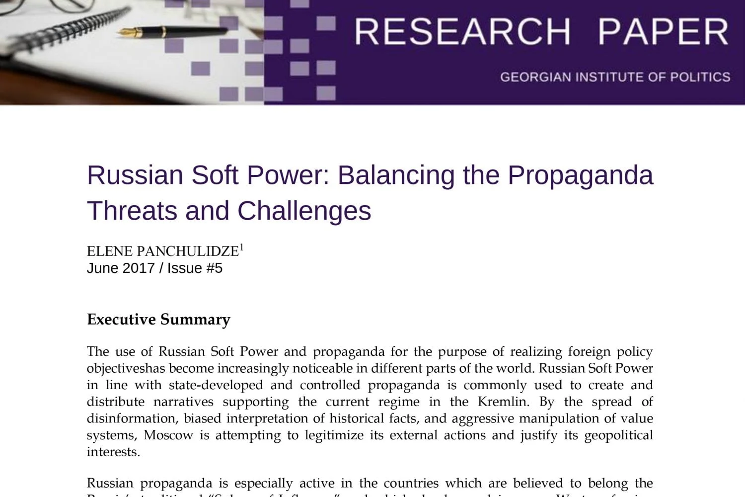 The present policy document is aimed at reviewing and analyzing the foreign policy objectives of Russian soft power and evaluating steps taken by the Georgian government to combat it at the national level. Additionally, this document offers concrete recommendations for reducing the influence of anti-Western propaganda on Georgia’spopulation and extensively enhance the country’s strategic communication capabilities.