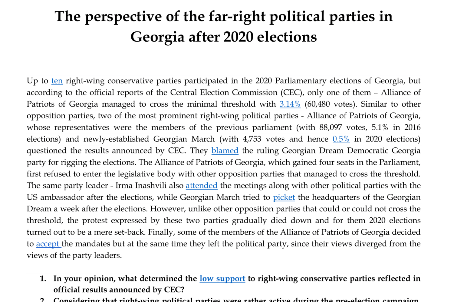 The Perspective of the Far-right Political Parties in Georgia after 2020 Elections
