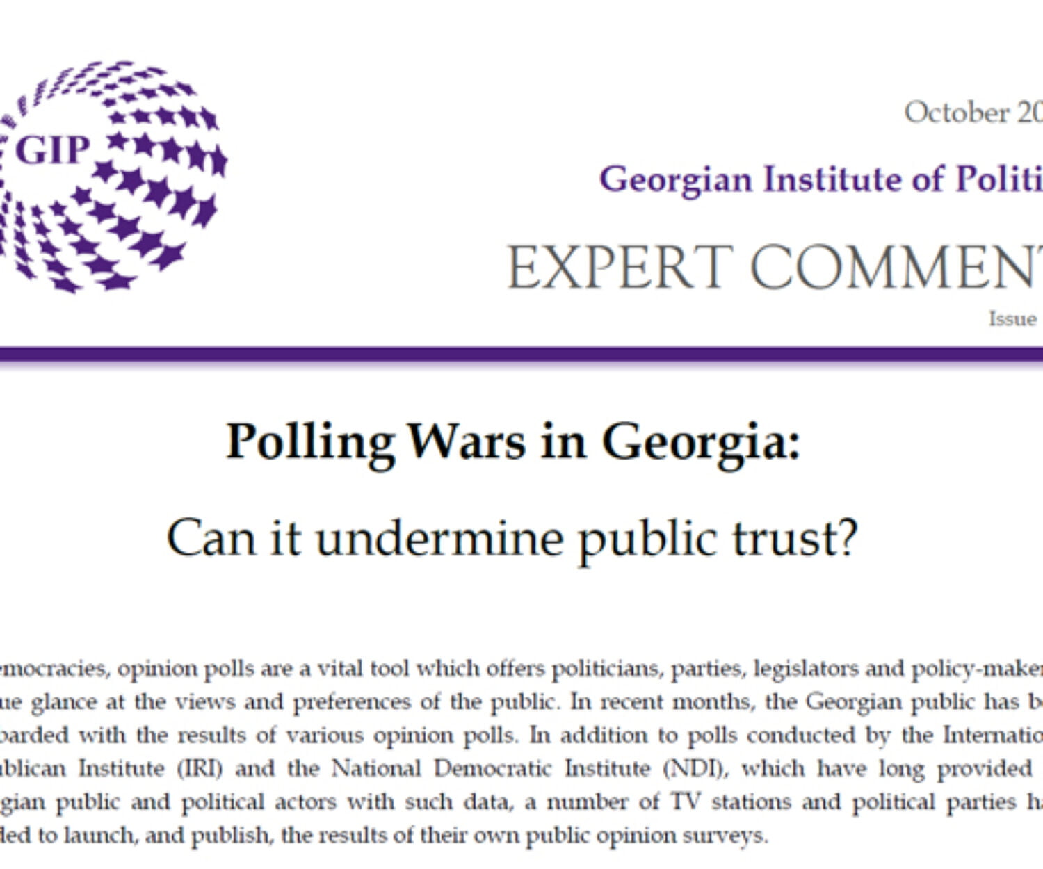 Uncategorized 21 Oct 2020 Polling Wars in Georgia: Can it Undermine Public Trust?Expert Comment #13 | October, 2020 GIP
