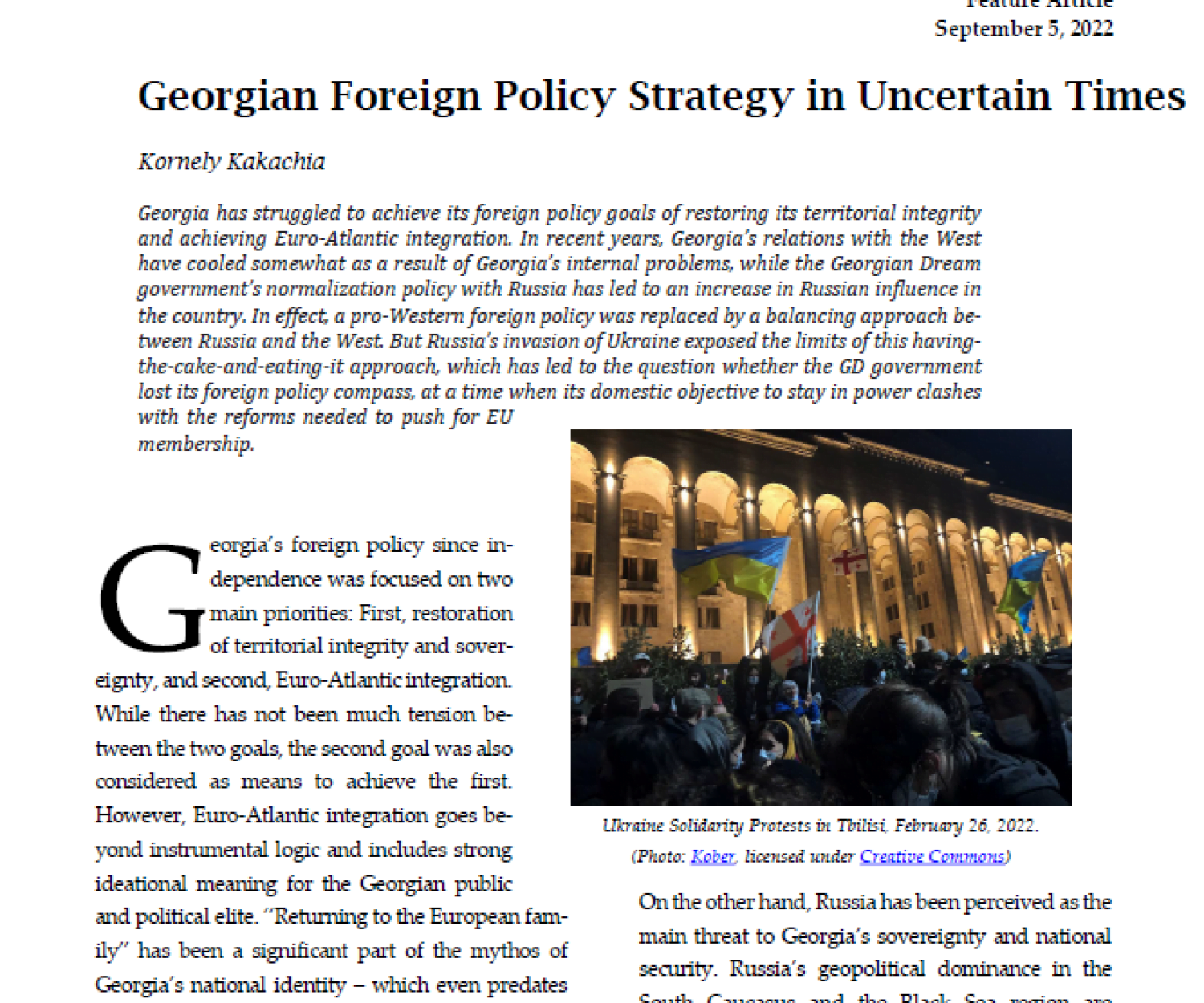 Uncategorized 07 Sep 2022 Georgian Foreign Policy Strategy in Uncertain TimesGeorgia has struggled to achieve its foreign policy goals of restoring its… Kornely Kakachia