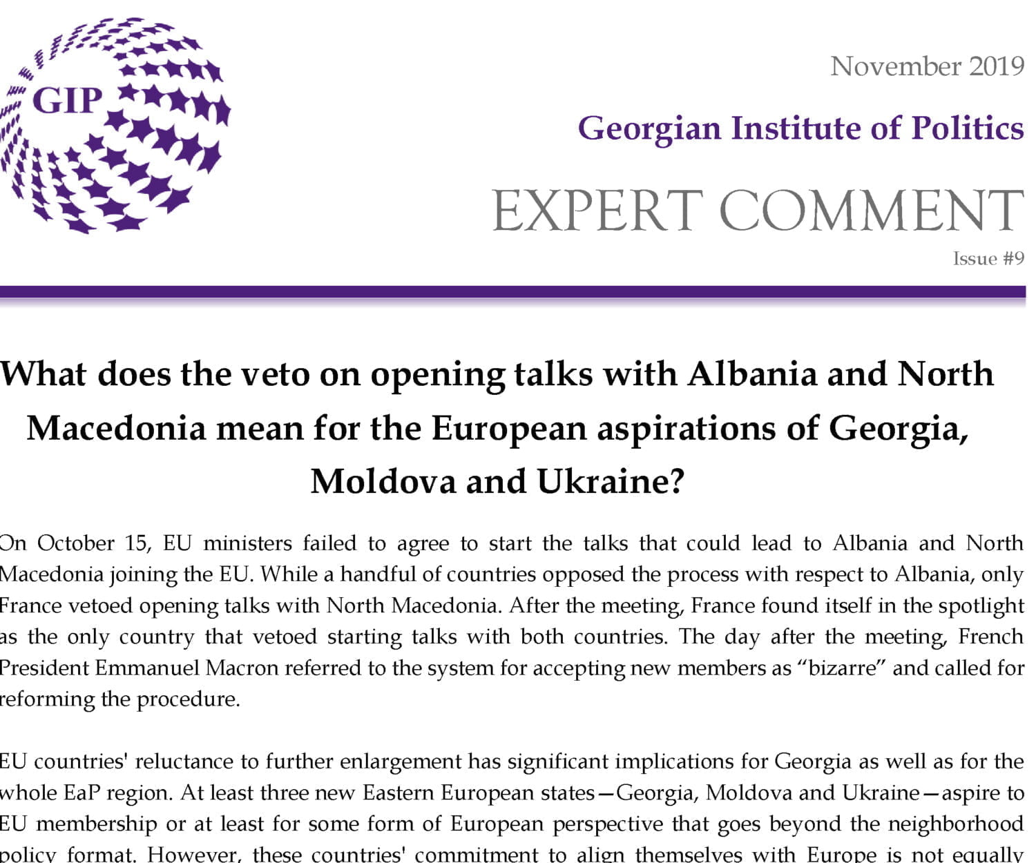 Uncategorized 30 Nov 2019 What does the veto on opening talks with Albania and North Macedonia mean for the European aspirations of Georgia, Moldova and Ukraine?Expert Comment #9 | November, 2019 Kornely Kakachia