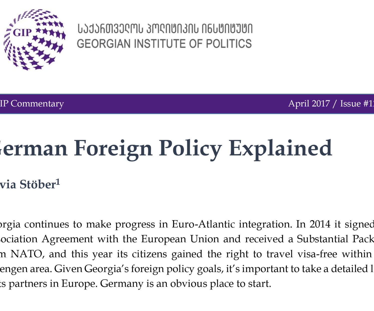 Uncategorized 03 Apr 2017 German Foreign Policy ExplainedGeorgia continues to make progress in Euro-Atlantic integration. GIP
