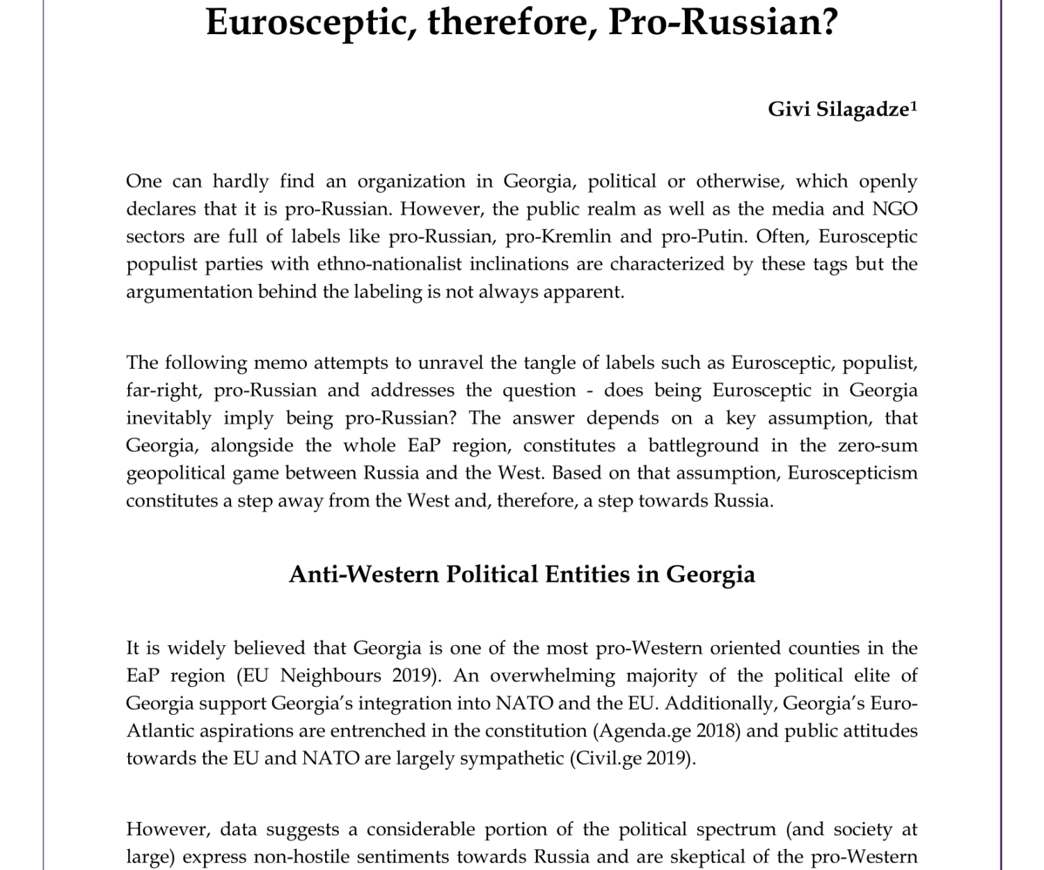 Uncategorized 25 Jan 2021 Eurosceptic, therefore, Pro-Russian?One can hardly find an organization in Georgia, political or otherwise, which… GIP