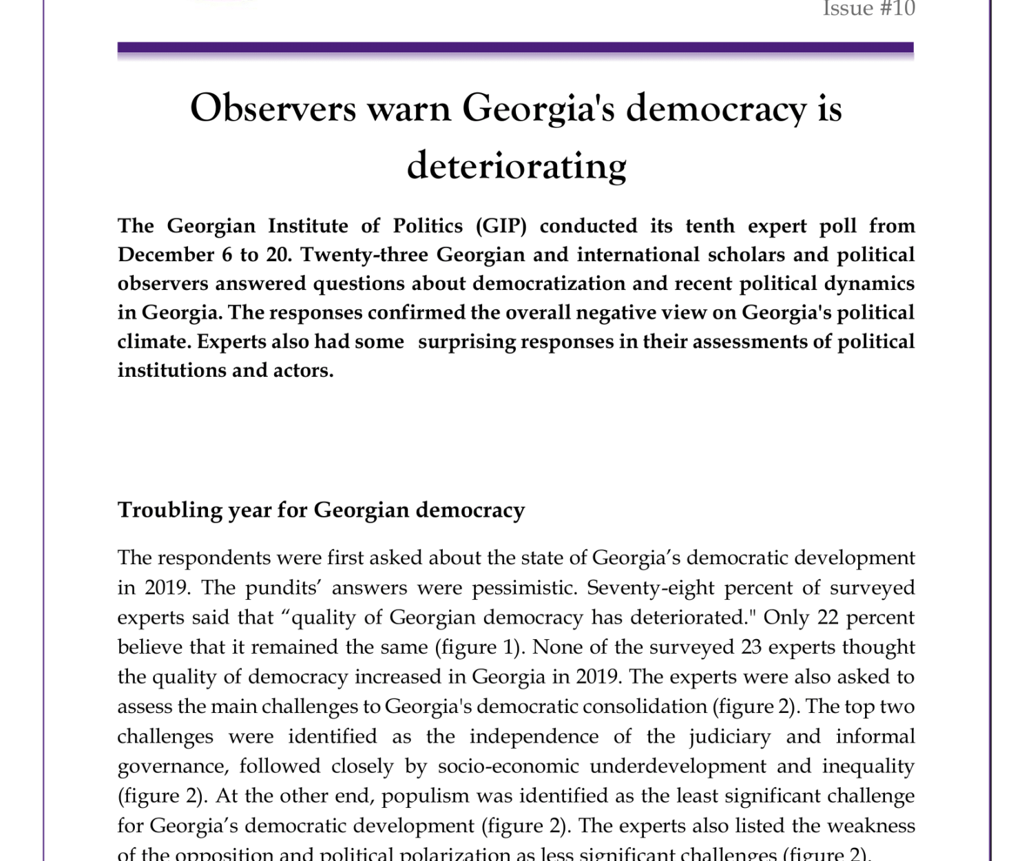 Uncategorized 23 Dec 2019 Observers Warn Georgia’s Democracy is DeterioratingExpert Polls #10, Georgian Institute of Politics, December 2019. GIP