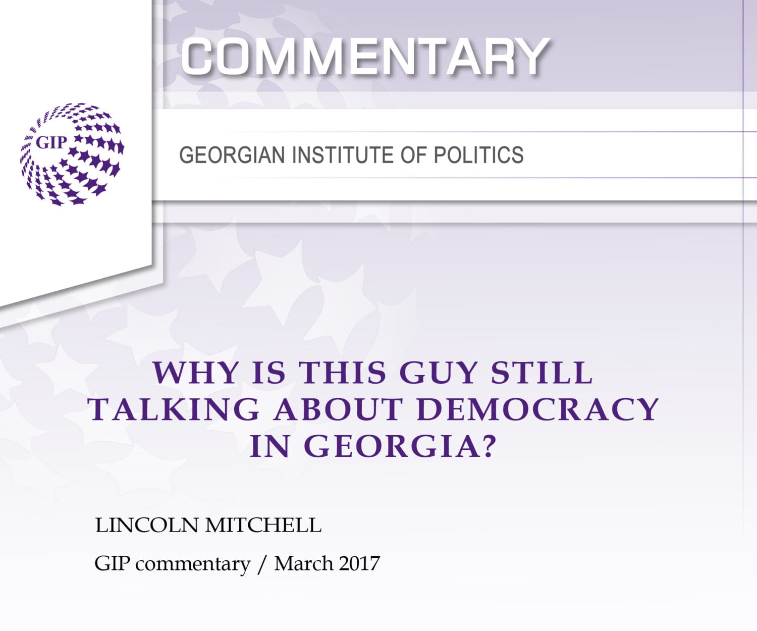 Uncategorized 13 Mar 2017 Why Is This Guy Still Talking About Democracy In Georgia?When you’ve spent a well over a decade writing about democracy in… GIP
