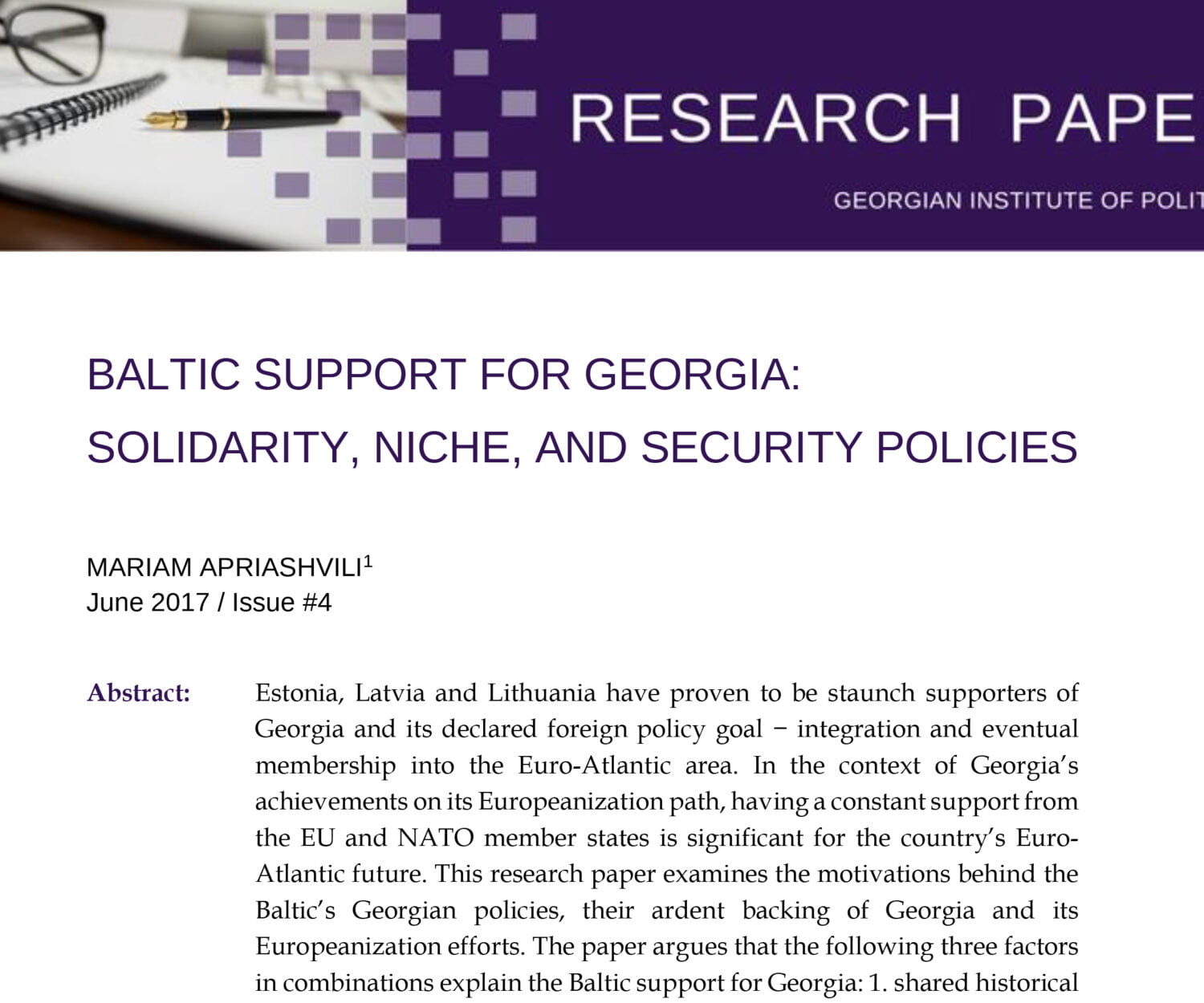 Uncategorized 15 Jun 2017 Baltic Support for Georgia: Solidarity, Niche, and Security PoliciesEstonia, Latvia and Lithuania have proven to be staunch supporters of Georgia… GIP
